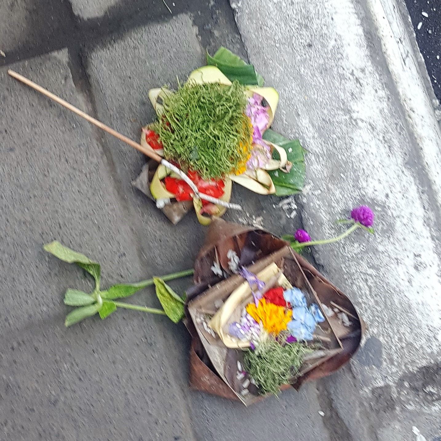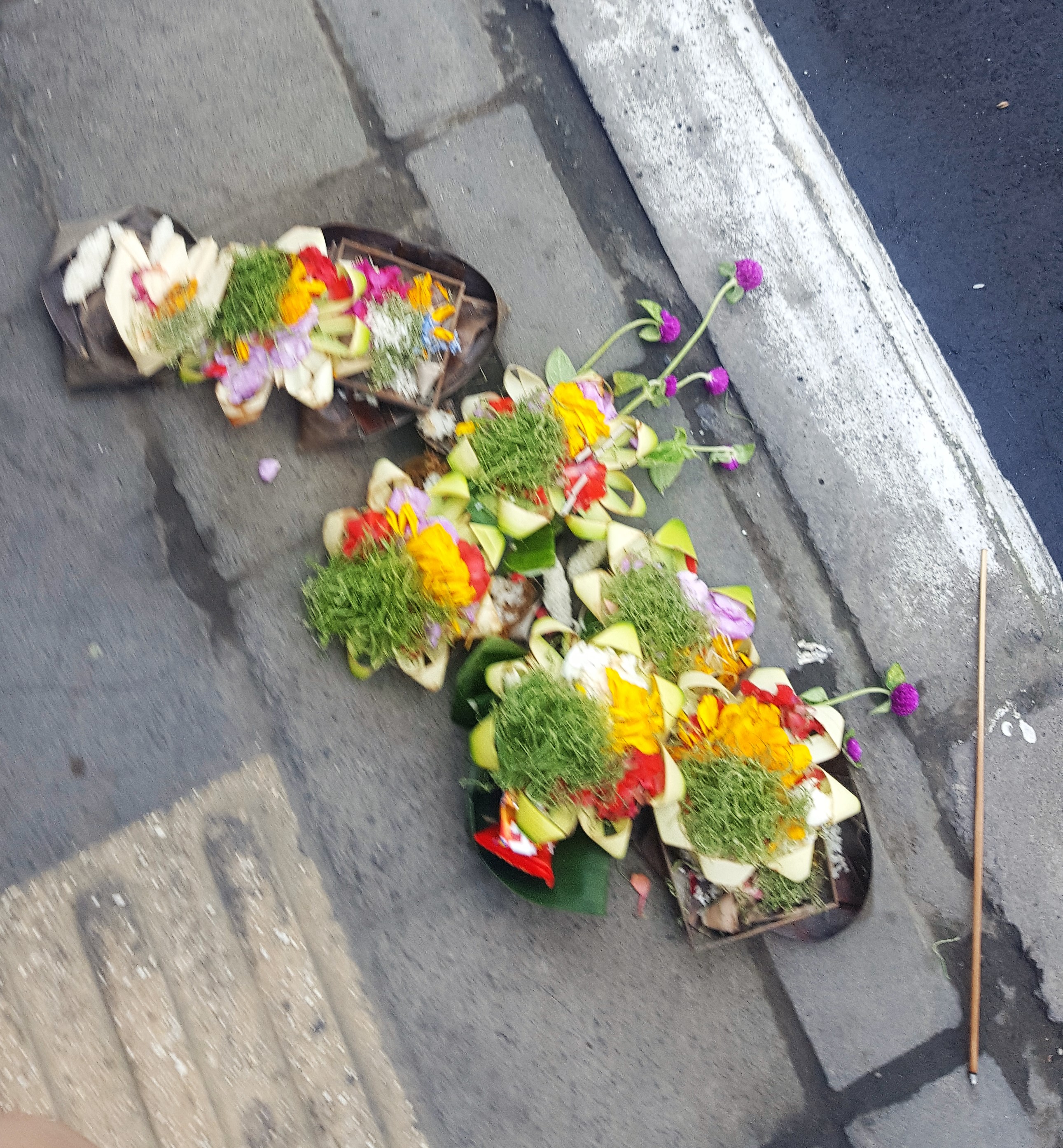 For our first day of introductory week, we learned about Bali’s culture and traditions, such as their ceremonies. Did you know they have daily ceremonies in the morning and evening? There are flowering offerings and a square made with banana leaves and rice. The incense is used to ascend their wishes to the Gods. We could see them outside of homes and shops everywhere we went. They also have ceremonies every 15 days, every 6 months, and annually.