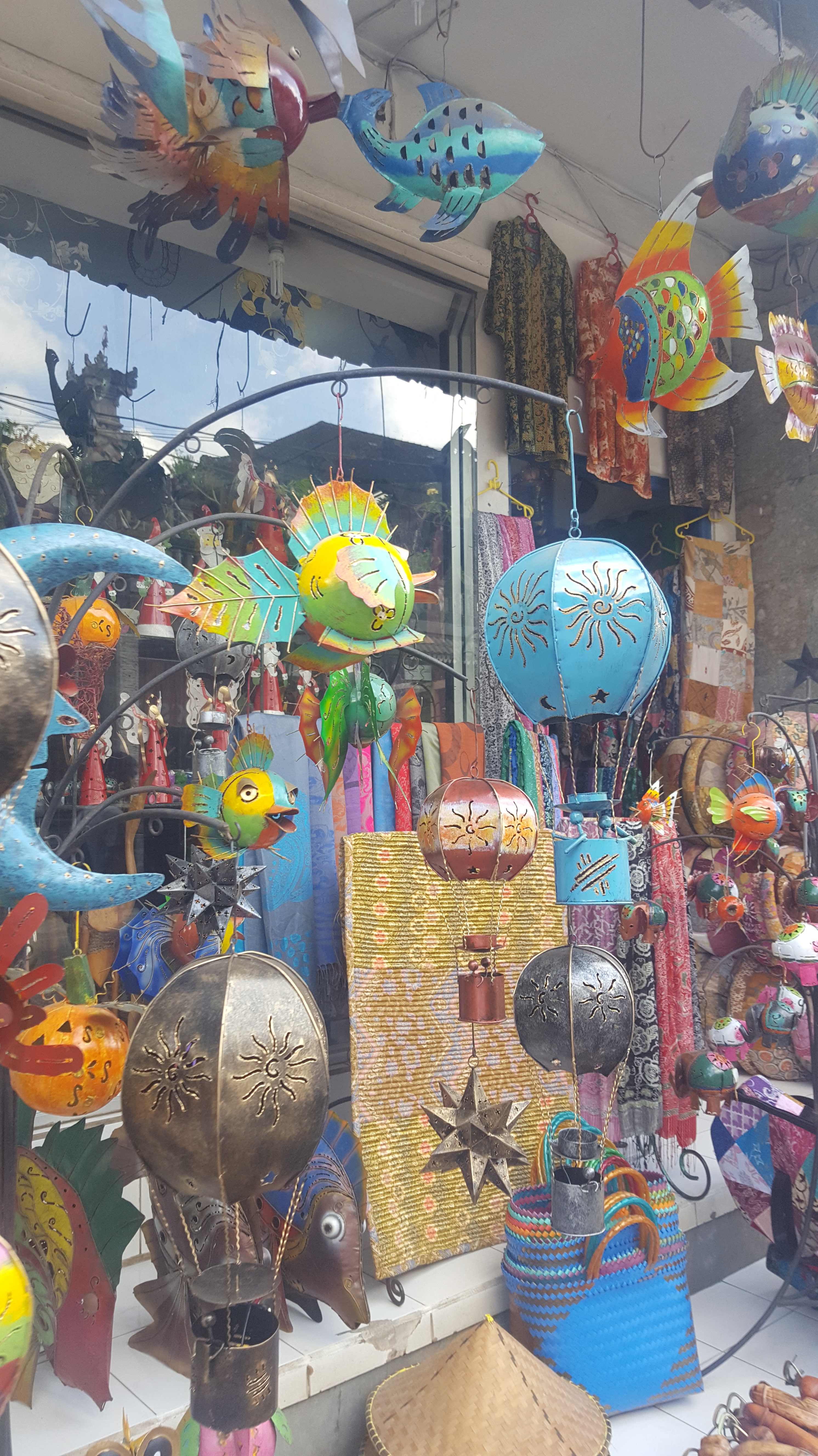 After learning about the ceremonies, we began our walking tour to the Ubud Market via Monkey Forest Street. It felt like we walked several miles to get there. The weather was hot and humid. Luckily, I brought a portable fan from home or I think I would have had a heat stroke. Before we arrived at the market, we passed by Ubud Palace, where we took a look around and took a group photo! This is where everyone saw I had a portable fan and we decided to stay in a circle to cool down together 😀 .