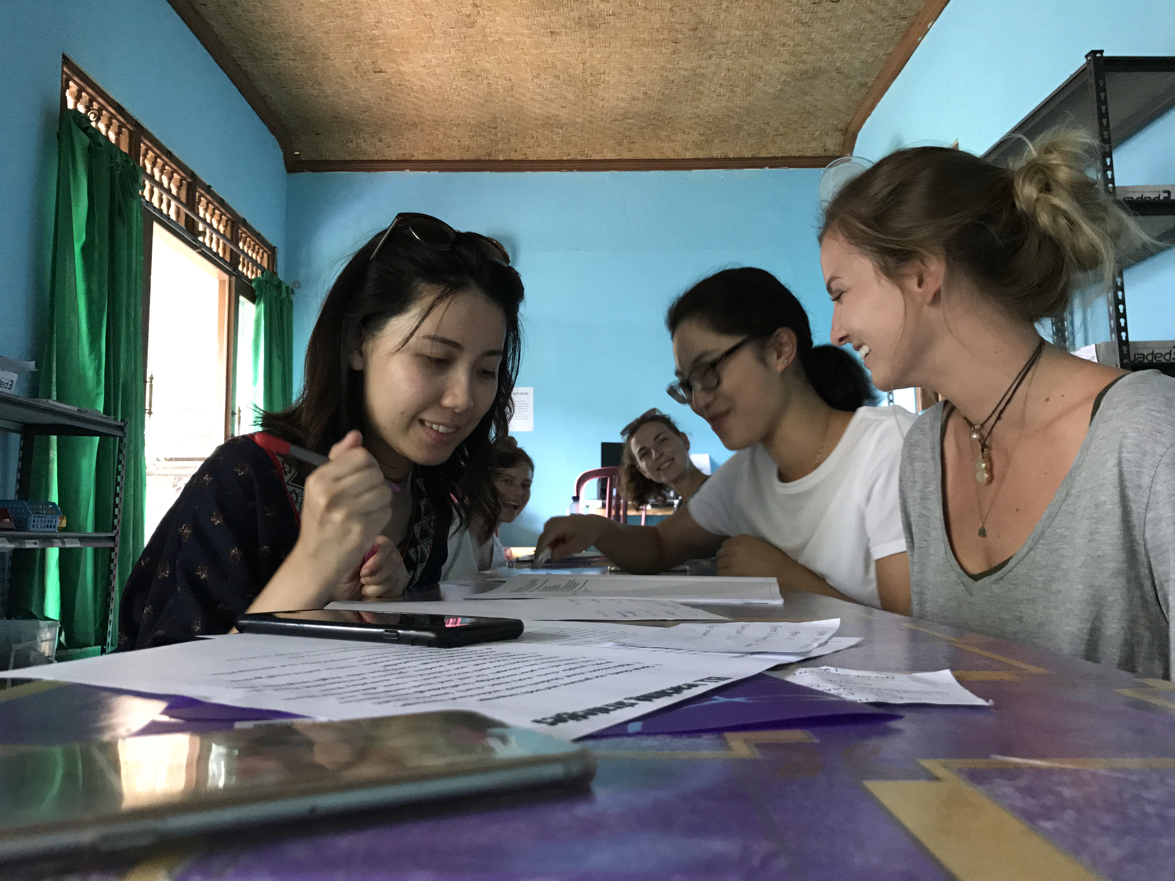 Our three day orientation ended and Thursday was our first lesson. As part of the ‘healthcare education’ project, we were requested to teach about STDs/HIV. There were 3 of us in the healthcare education project: Macey, Demi and I. Macey was supposed to be our third roommate, which, as you guys remember, did not happen. Here we are drafting up our lesson plan.