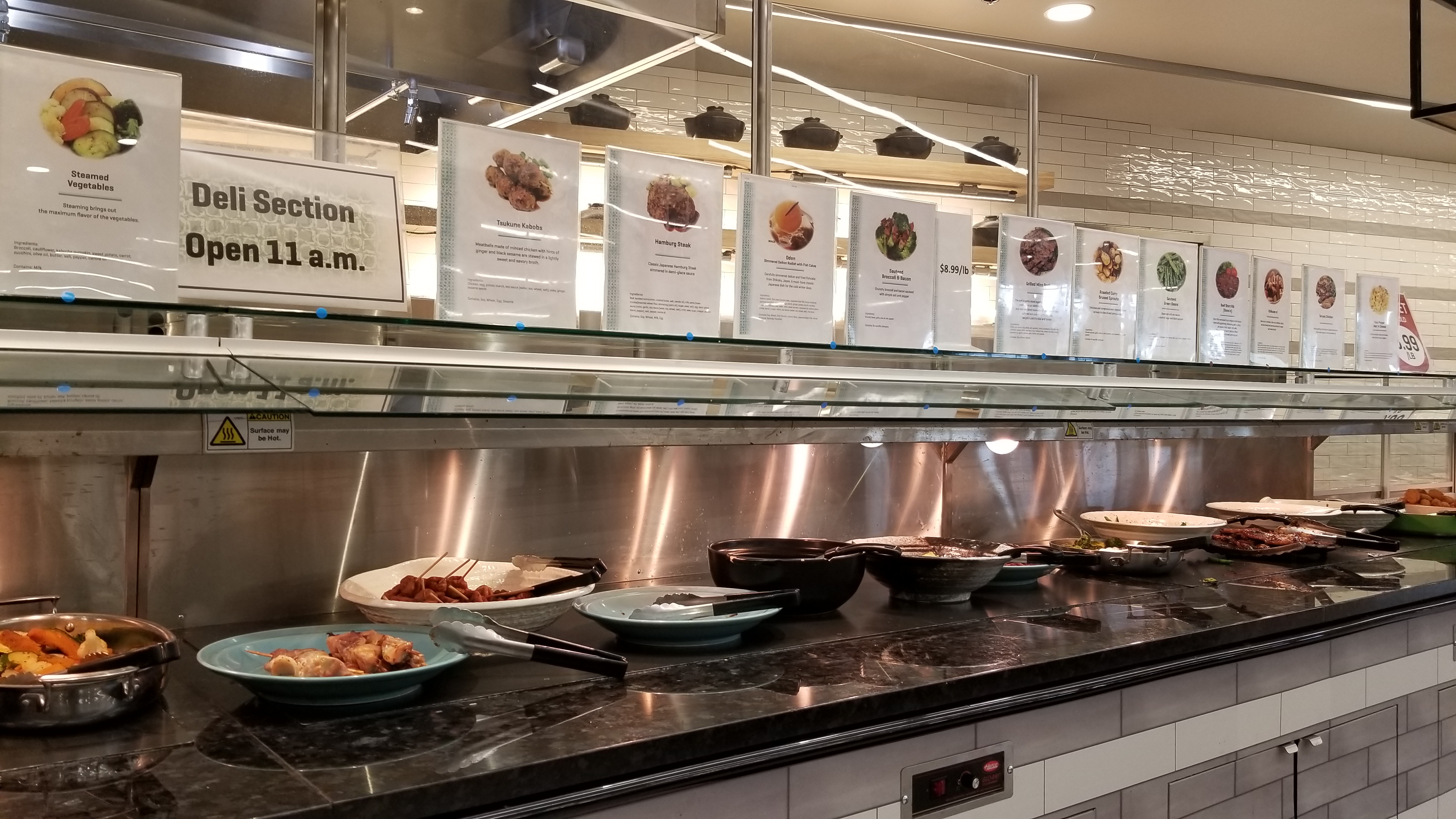 In addition, what I found the most exciting about this store is that it serves fresh foods: sushi, buffet bar, ramen, and pastries. There are also areas for you to sit and eat in the store. Even if you’re just hungry and not here to grocery shop, you can eat fresh, hot meals here.