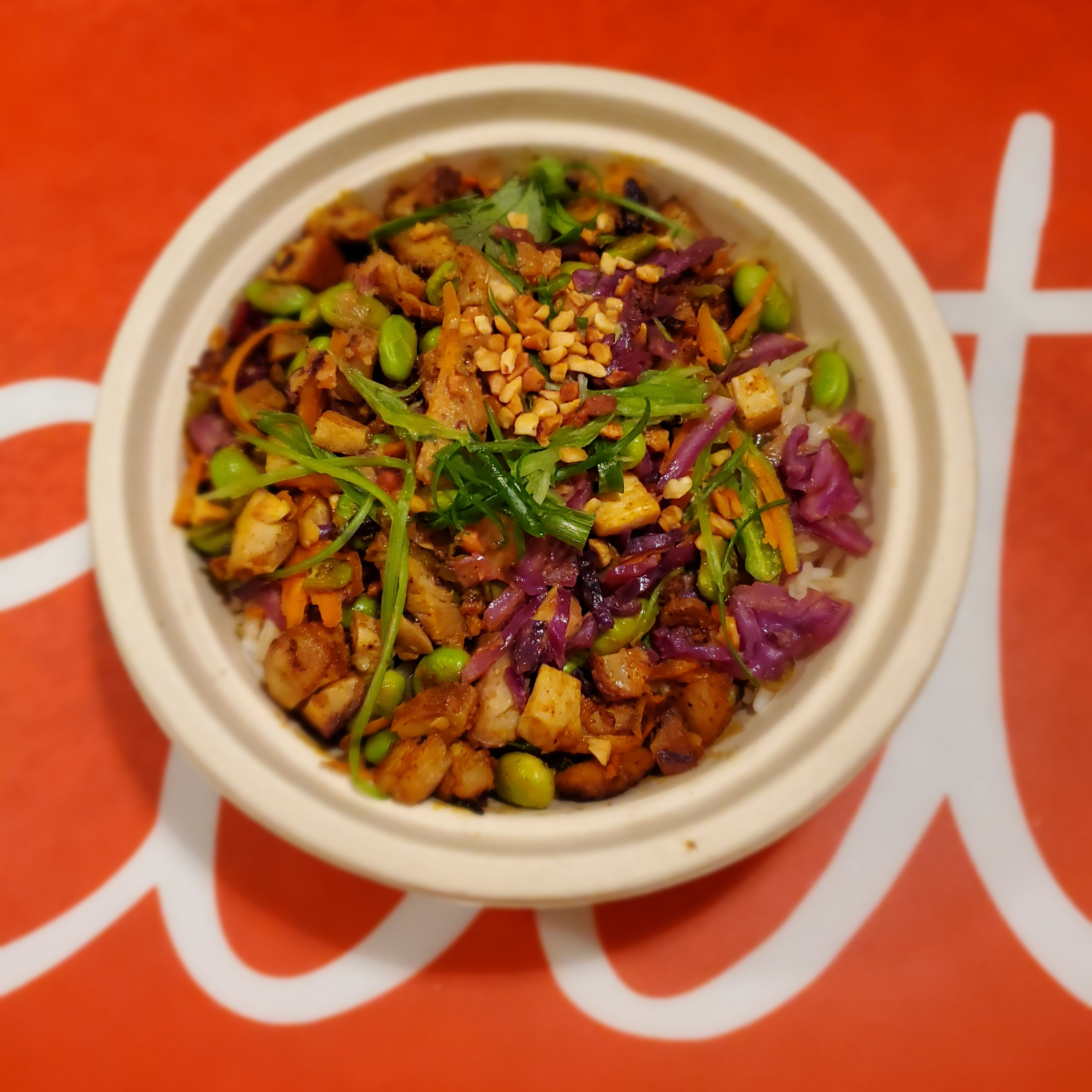 Today, I got the Thai Peanut Chicken Bowl. Before they revamped their menu, I used to get the Teriyaki Chicken Bowl but after I tried this Thai Peanut bowl, I couldn’t go back. Mainly because the Thai Peanut bowl has a strong flavor to it. It contains a delicious peanut sauce with tiny peanut bits on the top. I’m not sure if it is the peanut sauce that adds a bit of spice or the peppers but it is AMAZING! I love it when the food has a ‘zing’ to it.